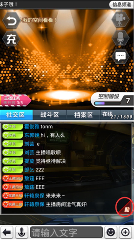 点击后可以在这里和玩家还有主播进行互动聊天。