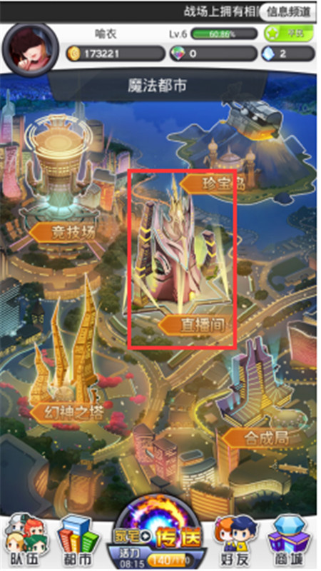 2、点击”都市“进入都市界面,再选择“直播间”