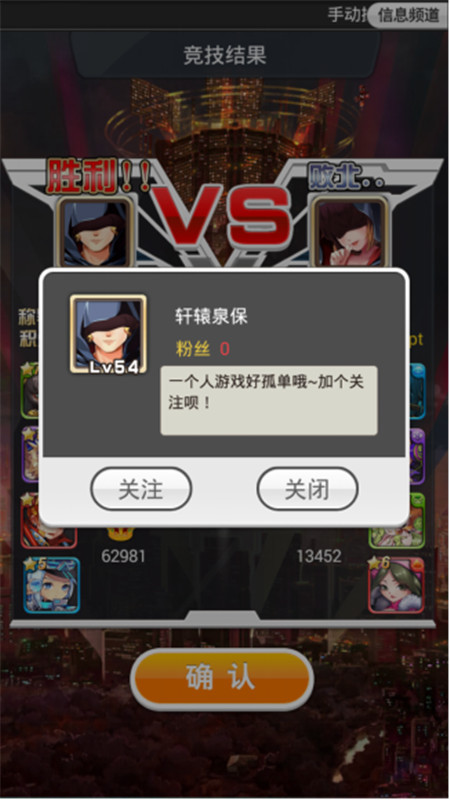 9.不打不相识,作为连线交互竞技手游,交朋友可是很重要的呢~无论胜负,关注对手,交个朋友吧~