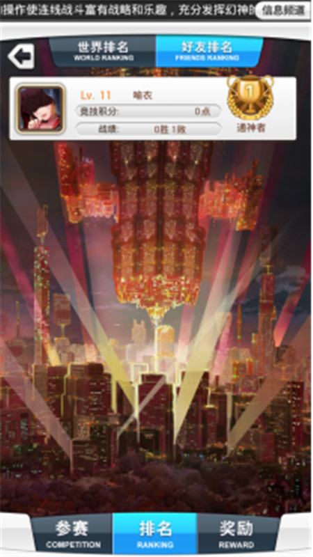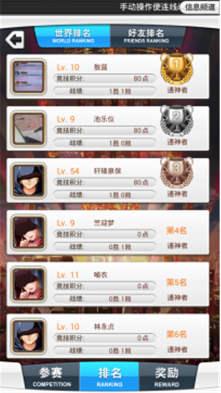排名分为世界排名和好友排名,世界排名能看到整个游戏的pvp排名,好友排名则可以看到你在好友中pvp的排名。