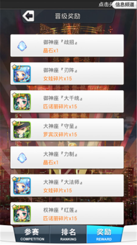 激烈的竞技后,游戏给大家准备了丰厚的奖励,根据积分等级获得一次性奖励。奖励主要包括魔晶与幻神碎片,战宠碎片可合成幻神。