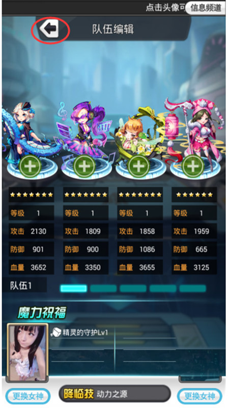 1.点击“队伍编辑”选择需要的幻神上阵,选择1、2可以切换契约女神主播哦~强大的降临技能将助你一臂之力。