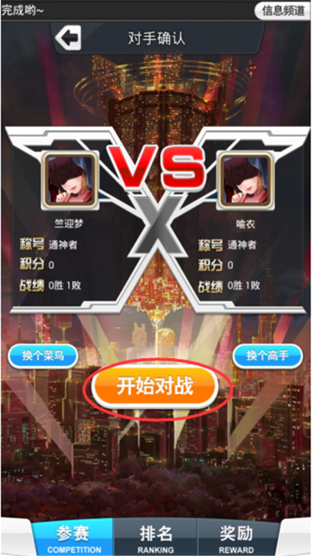 系统会自动为你匹配对手,点击“开始对战”就可进入竞技模式。