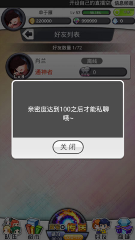 4)和好友一起战斗,亲密度达到100后就可以私聊了哦