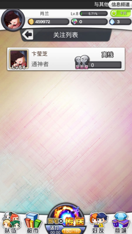 您所关注的玩家都会在这里显示,关注后会显示好友的在离线状态和亲密度。