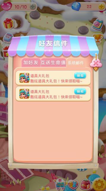 《粉碎冰激凌》的好友信件玩法主要包涵三个部分:加好友、索要生命值、系统邮件。
