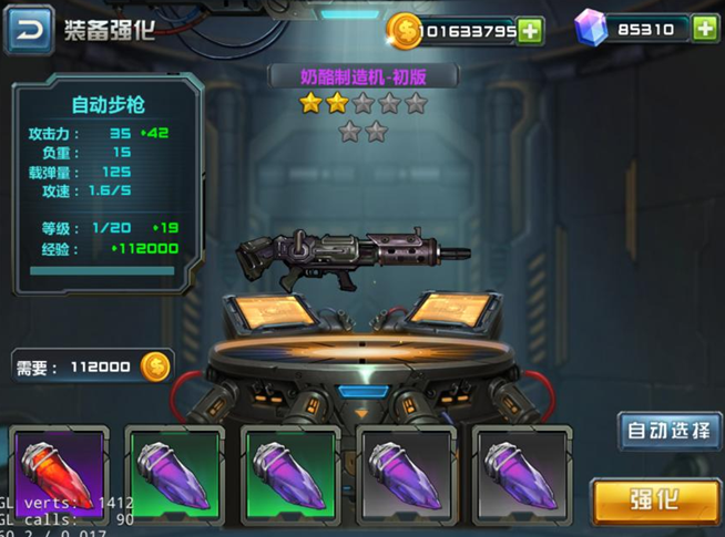 点击效果:自动选择能晶作为强化材料,不会自动放入装备