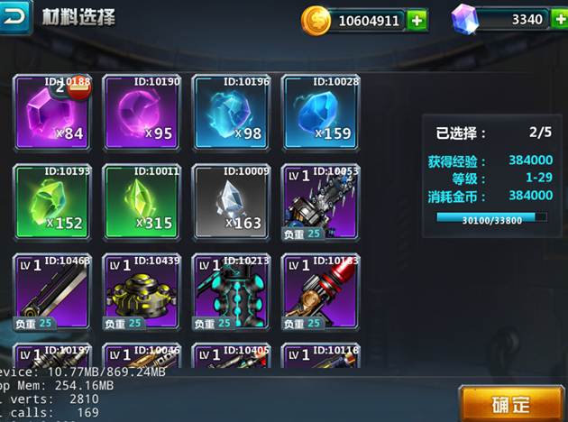 l 显示已选择的材料的数量、强化可获得的经验值、强化后可到达的等级、强化消耗的金币和强化经验的进度条