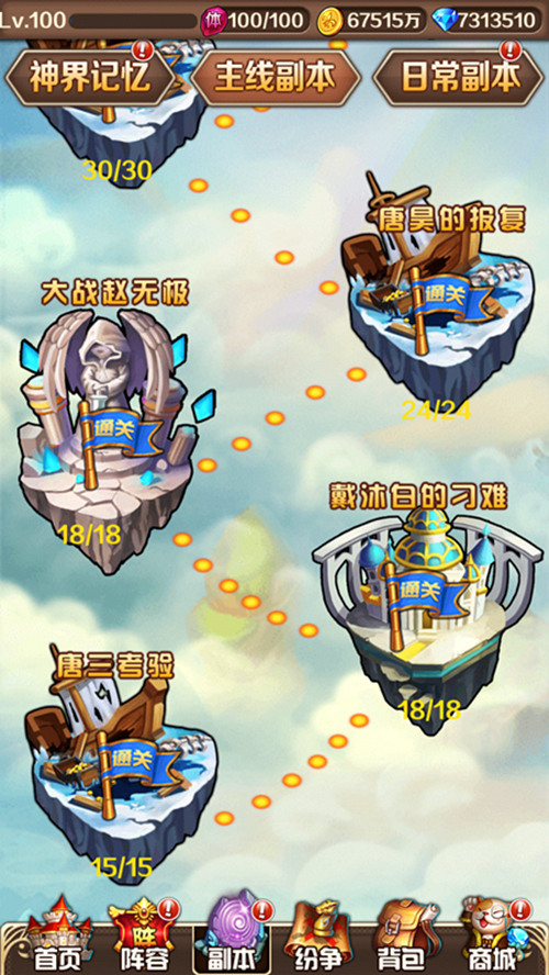 副本分为主线副本、精英副本、名将副本和每日副本。