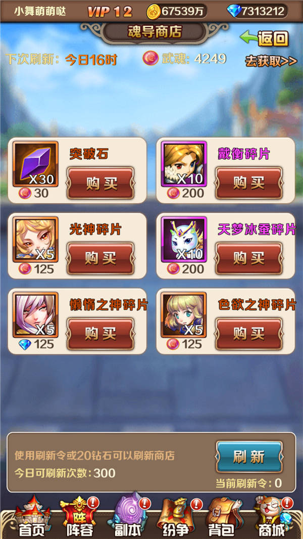 在斗魂场积累声望值后,可以在声望商店购买突破石。