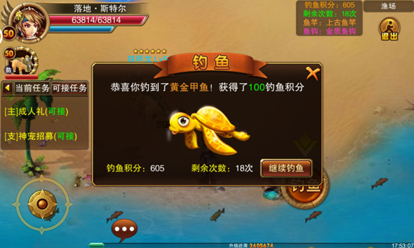 高级鱼竿可以提高钓到稀有鱼的几率哦,稀有鱼有很大几率开出珍惜道具。