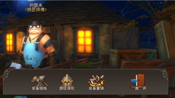 装备熔炼——铁匠约瑟夫技艺出众,他能强化你的任意装备,增加它们的主要属性,只要你提供更多的无用装备给他,同时他还有独家优惠,你的新装备强化不需要更多的无用装备,只要把以前那件旧装备给他,它所有的强化都将继承到新装备上,你可以在村子里很容易找到约瑟夫。