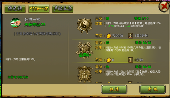 天脉建议选第二个:惑。每10秒混乱敌方2秒,PK就是要控制,打boss的时候也行。如果你完全不PK嘛,就点第一个:剜。伤害够足,打打BOSS的时候伤害倍儿爽。最后声动五岳,因为我已经放弃这个技能了,所以不用加,给你省了一笔钱,哈哈哈!