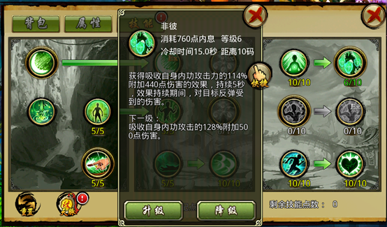 再看非彼,获得吸收护盾,吸收自身内功攻击力的百分比伤害,持续5秒,在效果其年内,反弹所受到的伤害。这么一大堆,看的头都晕了,就是获得一个护盾嘛,反弹伤害呗。PK好技能,自己不疼别人疼。