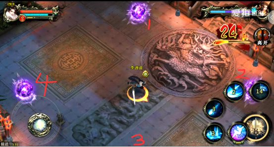 这时屏幕上会出现4个光球(说好的和美人跳舞呢!),光球会按图中的顺序顺时针爆炸。