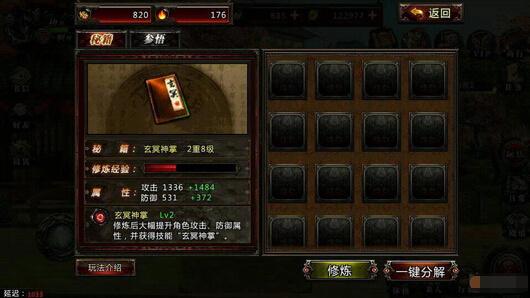为何秘籍单单要使用玄冥神功而不用其他呢?首先,玄冥在三个橙色秘籍中攻击力最大,(因为发帖图片所限,只用文字表达,各位友友谅解一下)初始达到了1127,防御247,吸星秘籍只有攻击577,防御455,化石攻击857,防御324,过副本,boss技能伤害很高,你有没有那么点防御并不重要,伤害还是一样的痛!其次,看技能,玄冥秘籍所附带的技能是“玄冥神掌”,效果是冰冻敌人大概五秒左右。(boss也不例外)五秒,够把内力打回一半了,而且伤害还高,随着玄冥神功秘籍突破,冰冻时间和伤害也会提高!(冷却时间三十秒)而其他两个秘籍,虽然各有各的特点,但吸星秘籍所自带的技能“吸星大法”,是制造出一个漩涡,吸引附近的敌人并造成伤害,经本人实验,吸引力太小,伤害不够高!持续时间大概八秒!(冷却同上)而化石秘籍所提供的技能“化石大法”,作用是制造一个以主角为中心的并跟随主角的土黄色圆圈,降低进入圆圈敌人的防御,经本人实验。大概能降低敌人四分之一的防御!圆圈持续时间大概十二秒!(冷却同上)但是,才降低四分之一的防御有什么用呢?高手决斗,只在霎那间,我冰冻你五秒,够把释放技能所需要的内力回复过来了。为啥没有吸星秘籍呢?因为,他释放的漩涡吸引力真的太小。伤害太低!(貌似boss吸引不过来)由上可看,还是玄冥秘籍最适合佩戴与升级!