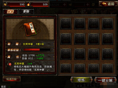 武功,其实就相当于技能,能升就升满,虽然后期消耗金币比较多,但是为了我们能够更好的刷副本,所以必须点满,角色达到一定级数,技能可进阶,进阶以后伤害大幅度提升,不过技能只提升技能伤害,不提升战力,希望以后可以得到改善吧!秘籍