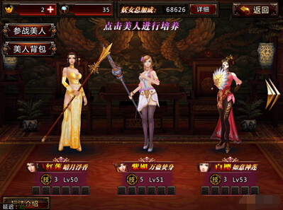 美人,这个可是提升战力的一大要点,也是妖姬这款游戏的一大特色!达到一定条件以后可以解锁美人,目前共有5个美人,美人可以使用“明珠”来进行升级,明珠可以通过精英副本和明珠日常来获得,美人每升一级都会获得战力,左上角有个“参战美人”,可以选择出战的美人并获得出战美人的技能,精英副本可以获得美人装备,凑齐一套美人装备以后可以进行美人的技能升级,美人尽量能升多少就升多少,尤其到了后期,我建议主要扫荡精英副本为主,来获得大量的美人资源和装备,以便大量的提升战力!日常