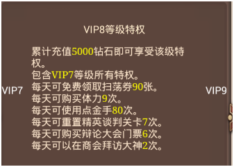 VIP7延续增加玩家每天获得的物品。
