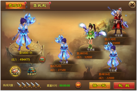 1、系统会随机显示四名玩家与他们的战力,若挑战成功,则名次上升。玩家还可以点击【换一批】按钮,随机刷新挑战对象。