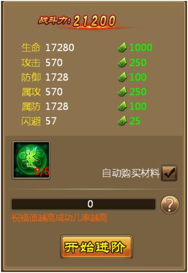 同时,游戏内有提供了自动进阶功能,一键进阶,省时省力