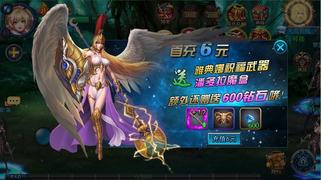 《战神之剑》已经上线了,相信大伙肯定希望能得到一份小攻略吧,那么就让小编我替你们来整理一下。手游中最值的当属首充了,只需6元,潘多拉魔盒带回家,还额外送600钻石!去哪里找更值的呢?