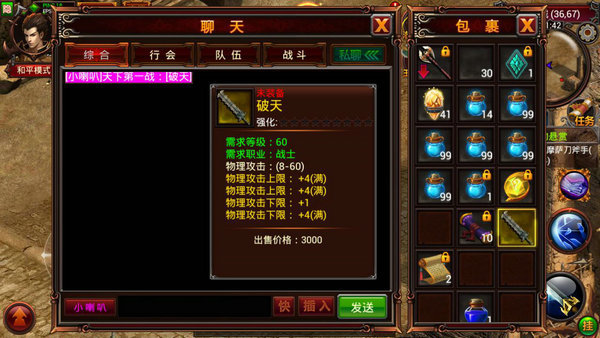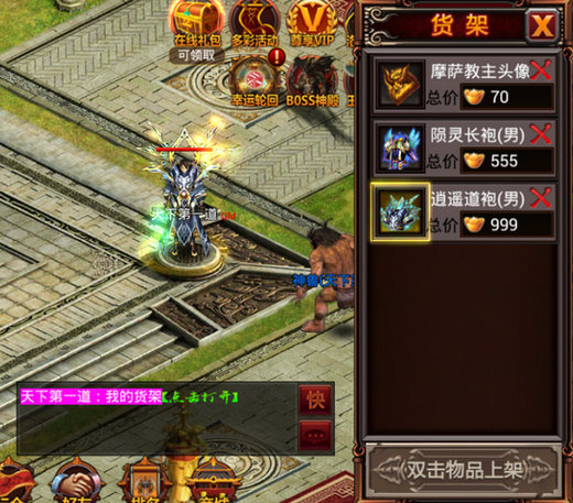 《王者之路》游戏里当您打到未绑定的装备或者多余的材料时,精明的您可以放到货架卖给其他玩家,可是怎么展示装备呢?只要在聊天面板中选择插入物品按钮,自动打开包裹面版,选择你想要展示的装备,就可以让全世界认识您的装备了。