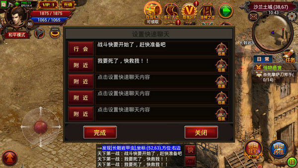 《王者之路》除了PK爽,玩得嗨之外,还带有深度社交的功能,完全能够满足你与基友or美女的交流,货架摆摊,好友交往,聊天入队,聊天寻人,这些社交功能都应有尽有。今天小编就来简单介绍一下游戏中的聊天系统。