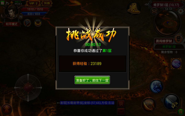 玩家进入活动中,每进入一层会刷新一些怪物,当玩家全部击杀后,会弹出进入下一层的提示,玩家可以点对应按钮进入下一层战斗。