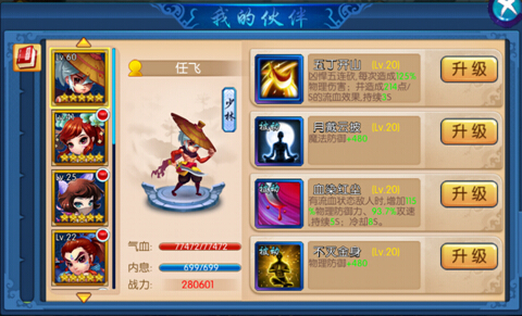 任飞是属于少林派的前排坦克型伙伴,同时又拥有着不俗的输出!作为一名能能打能抗的伙伴,是少林派传承已久的特色!任飞有着十分强悍的后排保护能力,同时还拥有着不错的输出能力,是每一个玩家心中坦克的首选!!!