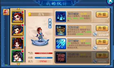 云飞是属于武当派的前排输出型伙伴,同时又拥有着不俗的防御!作为一名能爆炸输出的伙伴,实为敌方前排坦克杀手,是多少人梦寐以求的珍品?云飞以普通攻击伤害、暴击高,大招群体攻击而闻名,是大家闯荡江湖、打家劫舍的必备!!!
