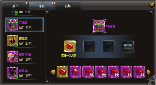 1、宝石可镶嵌至装备镶嵌孔中,为角色附加额外的属性