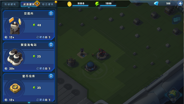 建造列表中有三类建筑可以建造,分别为资源生产类,防御类与综合类建筑。