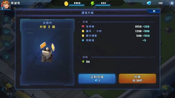 升级建筑可以提升建筑的各项属性,是我们强化母舰的主要方式。