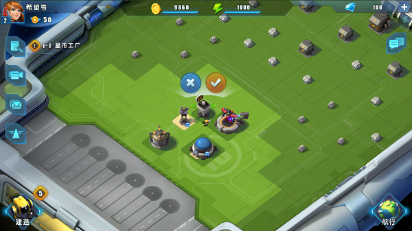 被选择建造的建筑将自动出现在母舰上,点击确认建造按钮,开始建造。