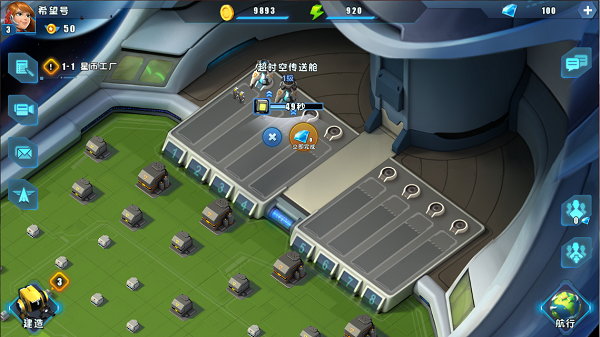 关闭传送舱界面,对应的传送舱将显示部队的训练进度信息,我们也可以选择取消训练或加速训练部队。