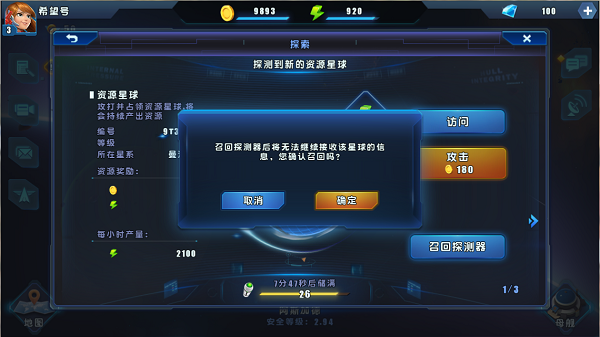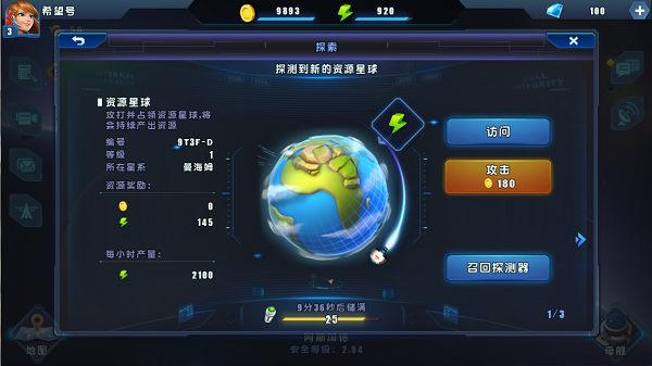 对于探索到的星球,我们可以选择访问,攻击或召回探测器。探测器将重新变回空闲状态。