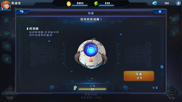 在游戏初期,我们拥有3个探测器,我们可以花费星币解锁更多的探测器。随着指挥中心等级的提升,我们可以解锁更多的探测器。