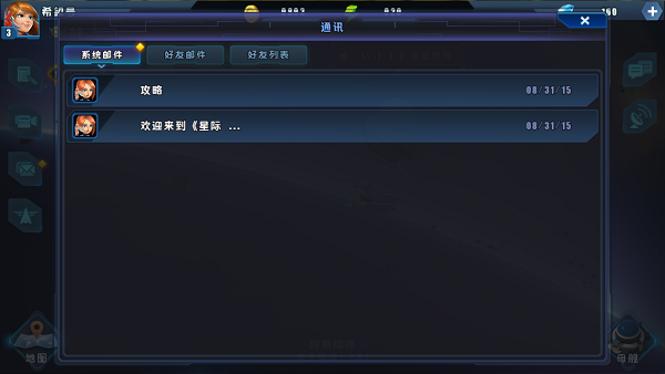通讯界面首先显示的是系统邮件,点击对应的条目即可查看邮件信息。