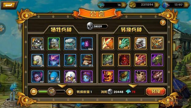 4.等20级加入公会可以换兵建议全部换泰坦刷图,没钻石就换雷鸟,牛头