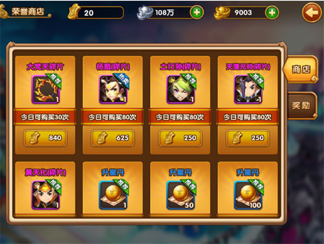 竞技商店:竞技场荣誉可以用来兑换非常稀有的道具,在荣誉商店每天都可以兑换一定数量的道具,竞技场排名越靠前,可以在奖励商店兑换竞技奖励道具,奖励商店的道具只能兑换一次。