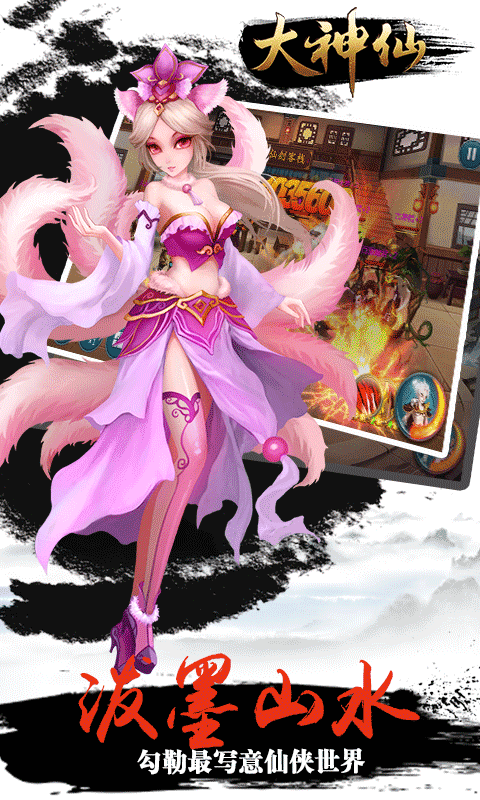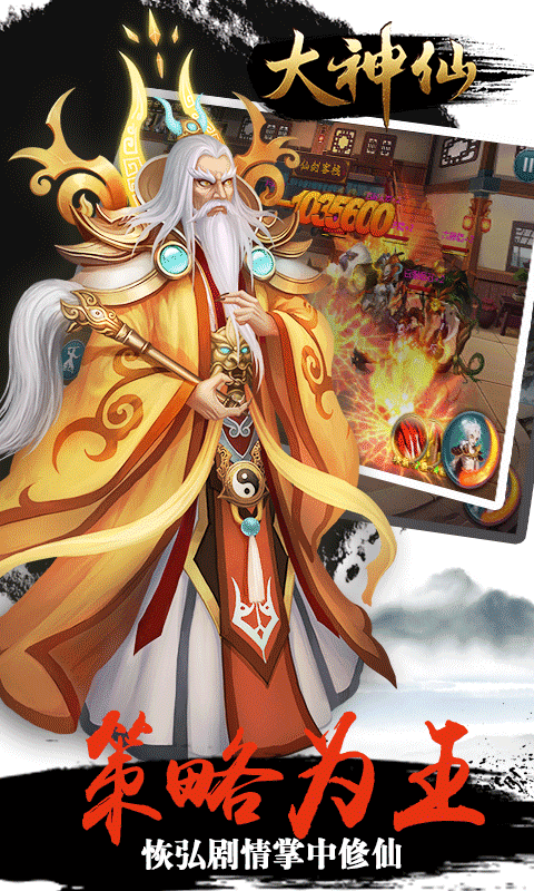 全球首款手绘3d策略回合rpg《大神仙》,以其首创的手绘3d画风和细腻spine骨骼动作,克服传统3d游戏模型粗糙、贴图失真等缺点,有着大幅超越传统3d游戏的巅峰画质。同时游戏以中国神话为背景,融合仙 剑、西游、封神、山海经等故事荟萃出盛大空前的世界观。另外游戏有着打击感强烈的战斗动作、爽快华丽的3d特效、策略感十足的回合战斗,外加帮派战、跨服战、世界boss、药园偷菜、消消乐、护送打劫等趣味互动玩法,堪称2016年最期待的仙侠网游!