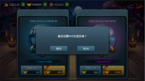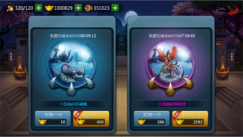 n 普通召唤:使用少量元宝进行召唤,可以获得伙伴、魂魄、道具、材料等游戏内的宝物。