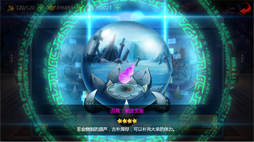 n 召唤成功之后,会播放酷炫的召唤动画,并显示金色龙爪托住的紫色召唤球,召唤球中间的莲花底座上会显示此次召唤获得的物品。