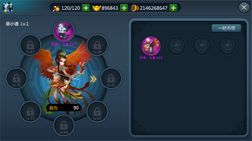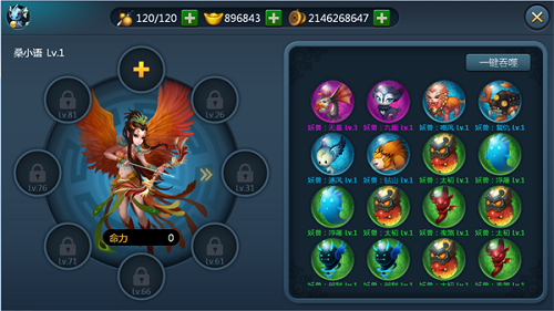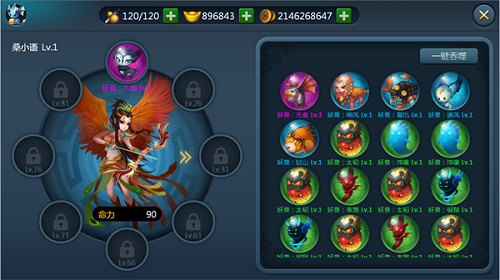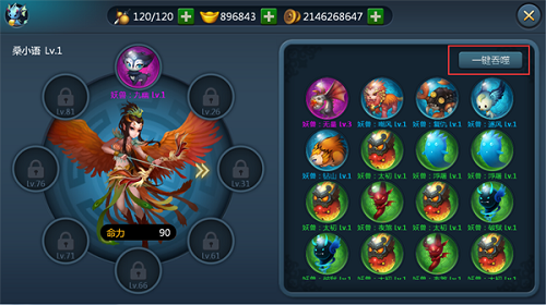 n 点击封印槽中的“+”按钮,可以自动装备一个能力最强的妖兽。