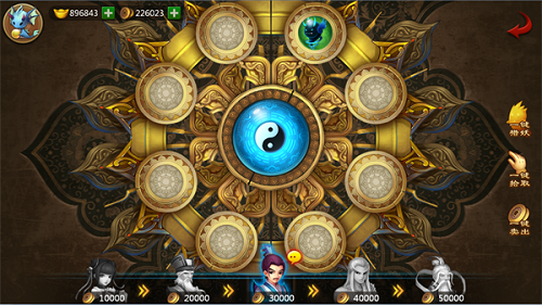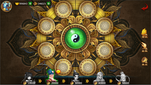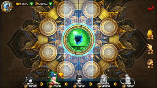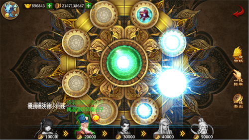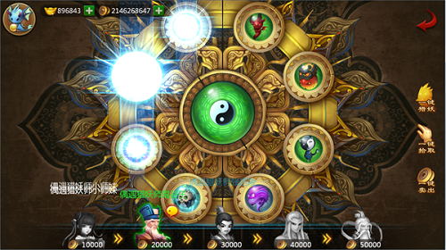n 点击中间的罗盘拾取妖兽,系统会自动放入周围的妖兽槽中。
