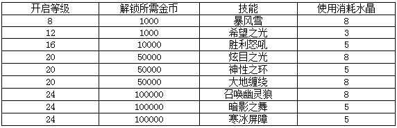 团长技能在8级解锁,每到相应等级,就可以花费金币解锁新的团长技能,发动团长技能时会消耗水晶,水晶通过战斗积累。