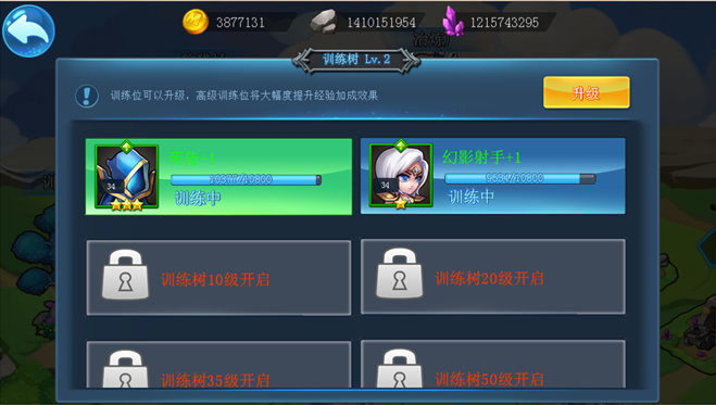 将英雄放在训练树中培养可以快速提升英雄的等级,训练树的等级越高,解锁的训练位置越多。