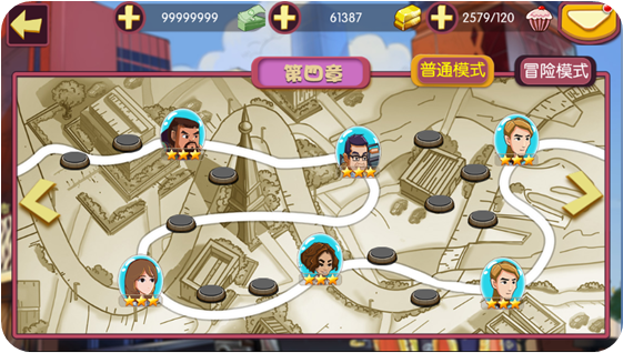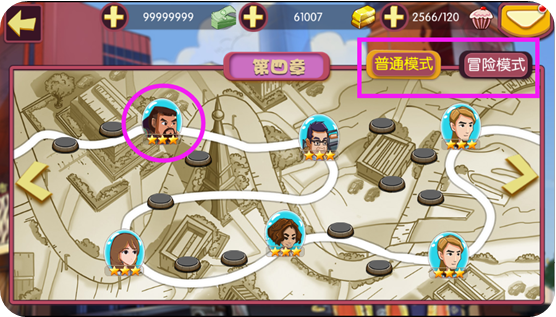 ① 普通模式——难度较低且无次数限制,掉落一般道具和金钱