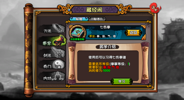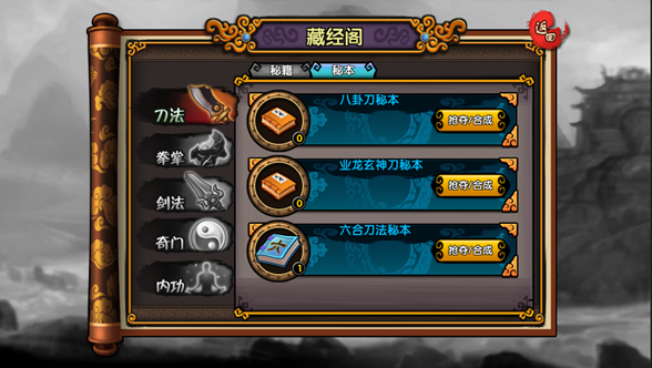 2.【秘籍】:玩家获得的武学线索、武学秘籍都在此处显示。可以在此查到所有已获得的武学秘籍。